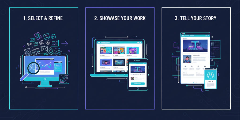 10個の平凡な作品より、3個の素晴らしい作品の方が、はるかに評価されます。採用担当者は多くのポートフォリオを見ているため、最初の3作品で興味を持たれなければ、それ以降は見てもらえないと考えてください。