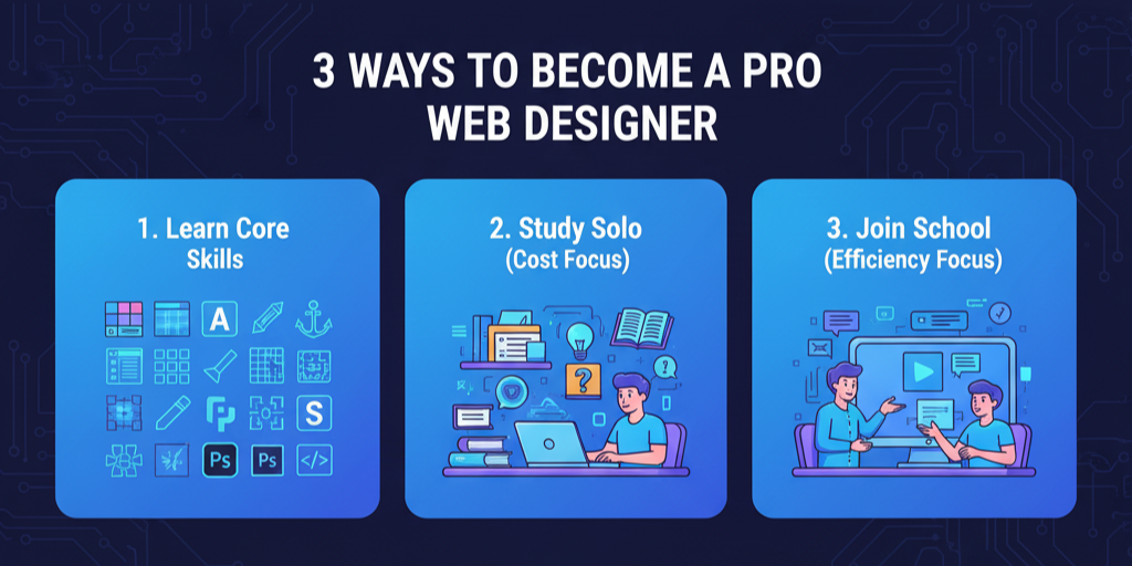 ここからは、具体的にどうやってWebデザイナーとしてのスキルを身につけるかを解説していきます。